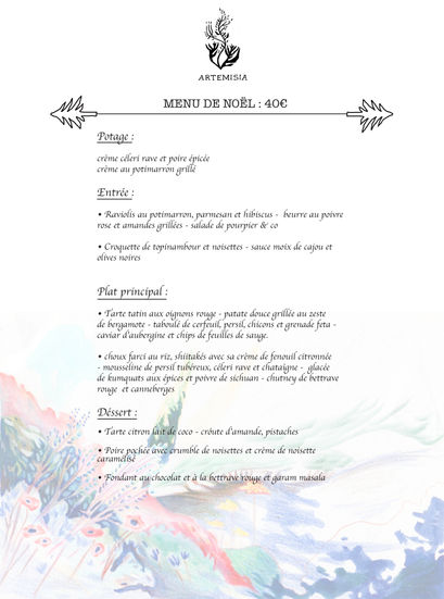 Artemisia est un projet de cuisine sur mesure et vegan. L'initiative est de proposer des plats spontanée, créatif, coloré et 100% Végé réaliser avec des légumes et aliments locaux et de saisons. Offrant des cours de cuisines, des services à domicile ou à l'occasion d'évènements.